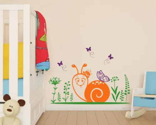 Caracol, mariposas y flores