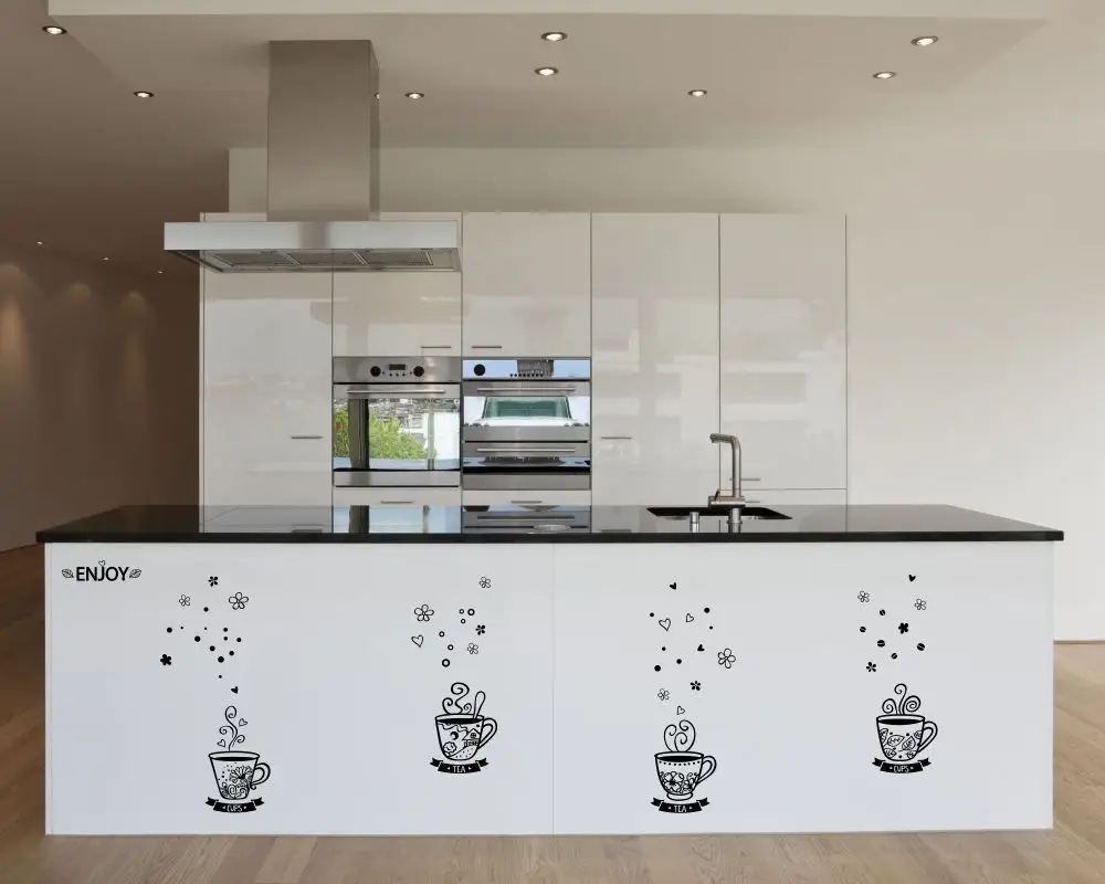 Tazas llenas de fantasía para darle un toque diferente a tu cocina. Distribuye los diferentes dibujos dónde más te guste. Vinilos decorativos. Vinilos cocina.
